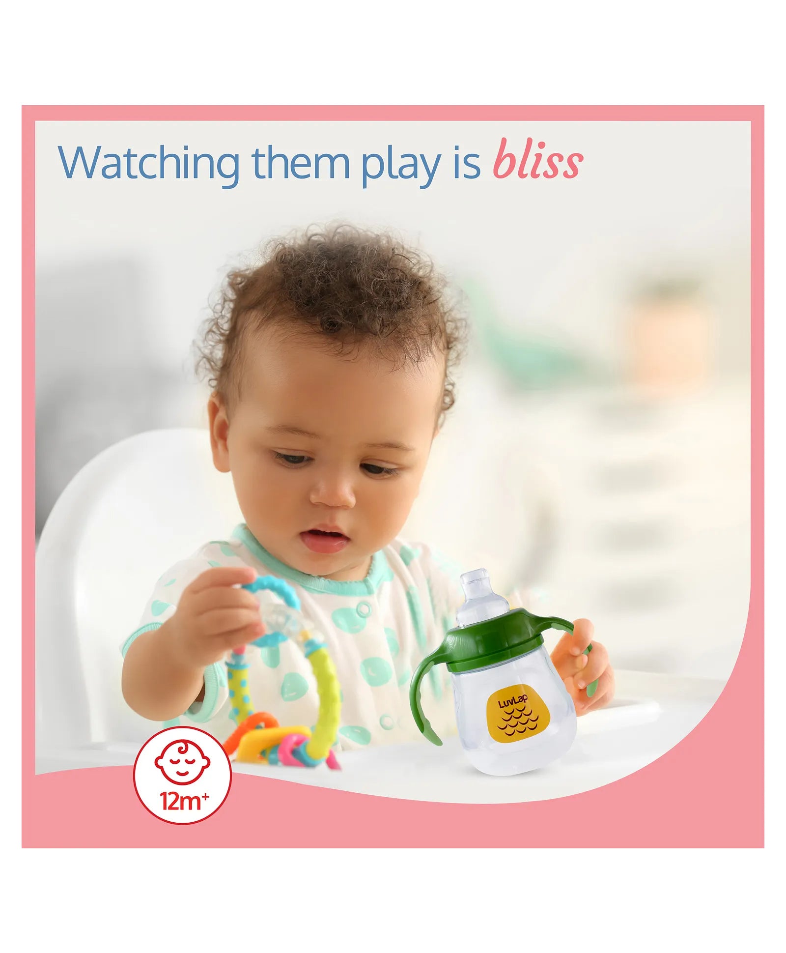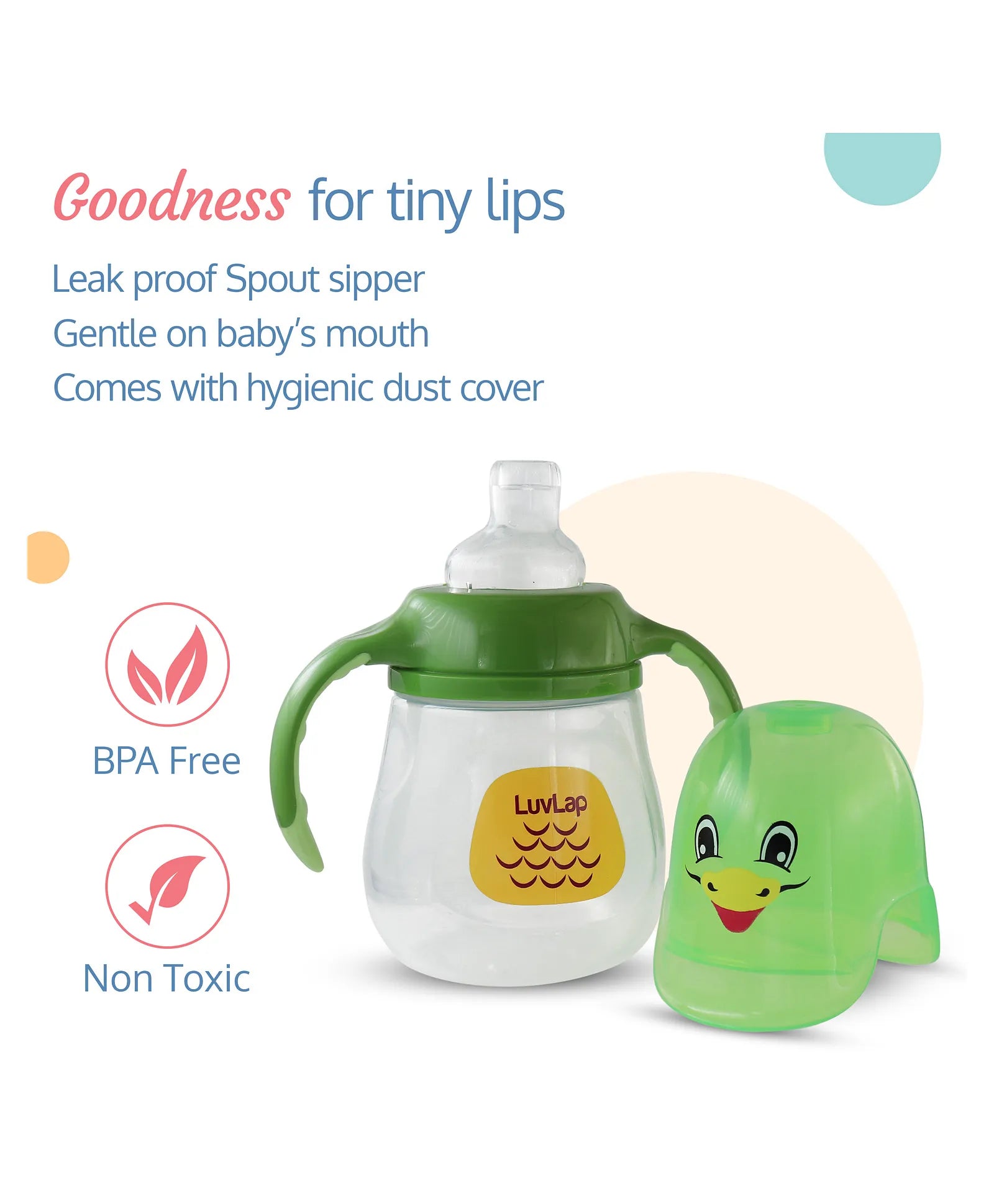 A touch flow valve is included with the LuvLap Little Dolphin spout sipper. When a youngster sips, the valve readily opens. Easy-grip, ergonomic handles are specifically made to meet the needs of tiny baby hands.