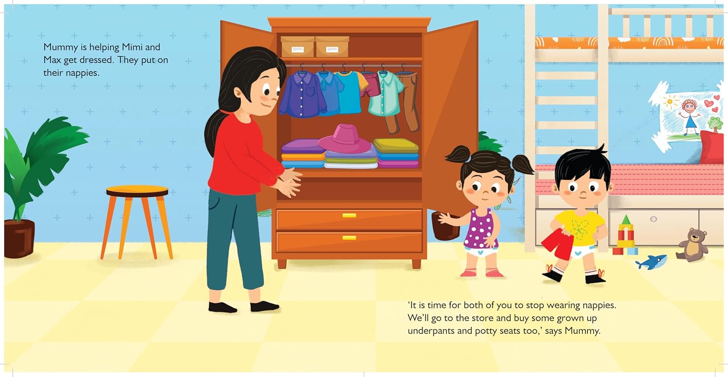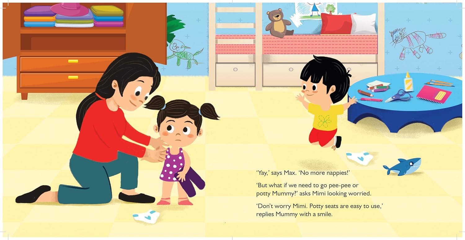 Not another diaper! Mimi and Max are prepared to give up using diapers! Come along as they learn to say goodbye to diapers and utilize their brand-new potty chairs. Using the sibling characters Mimi and Max, the Mimi and Max toddler series is an amazing set of storybooks that will let your youngster experience life for the first time. You may explore and appreciate your child's early experiences together by reading these captivating stories to them.
