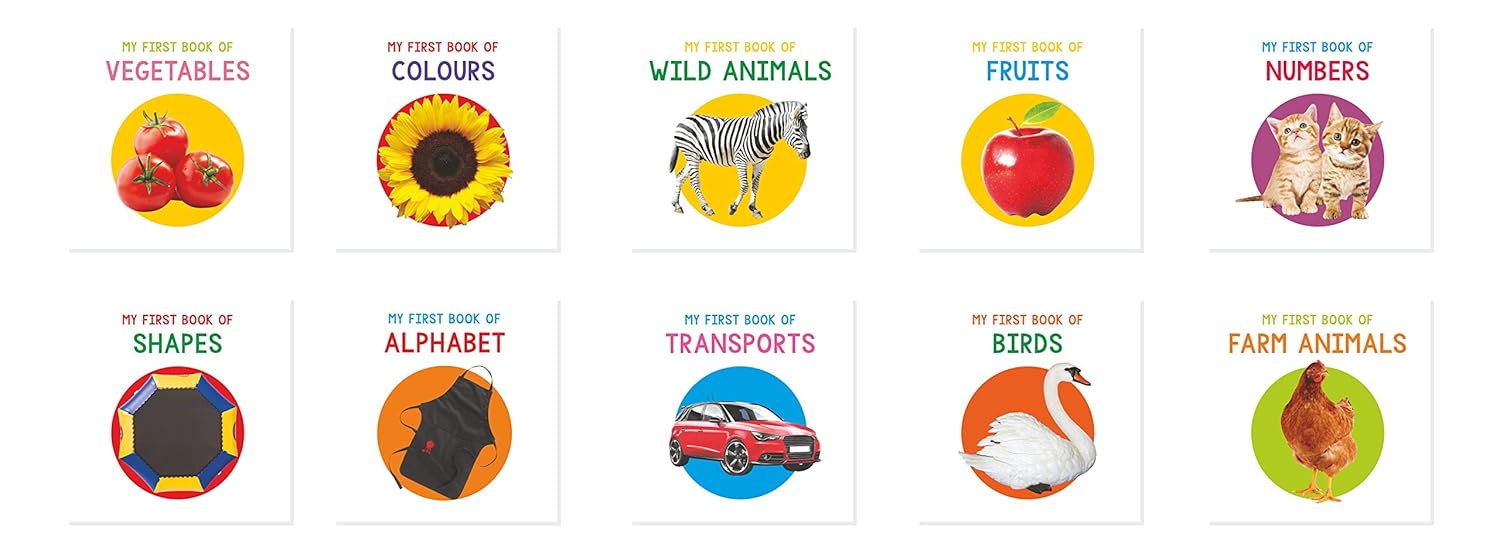 The ten books of the FLAP Baby Library, which include a variety of vocabulary words and well-researched illustrations, are designed to aid young children in developing fundamental concepts.