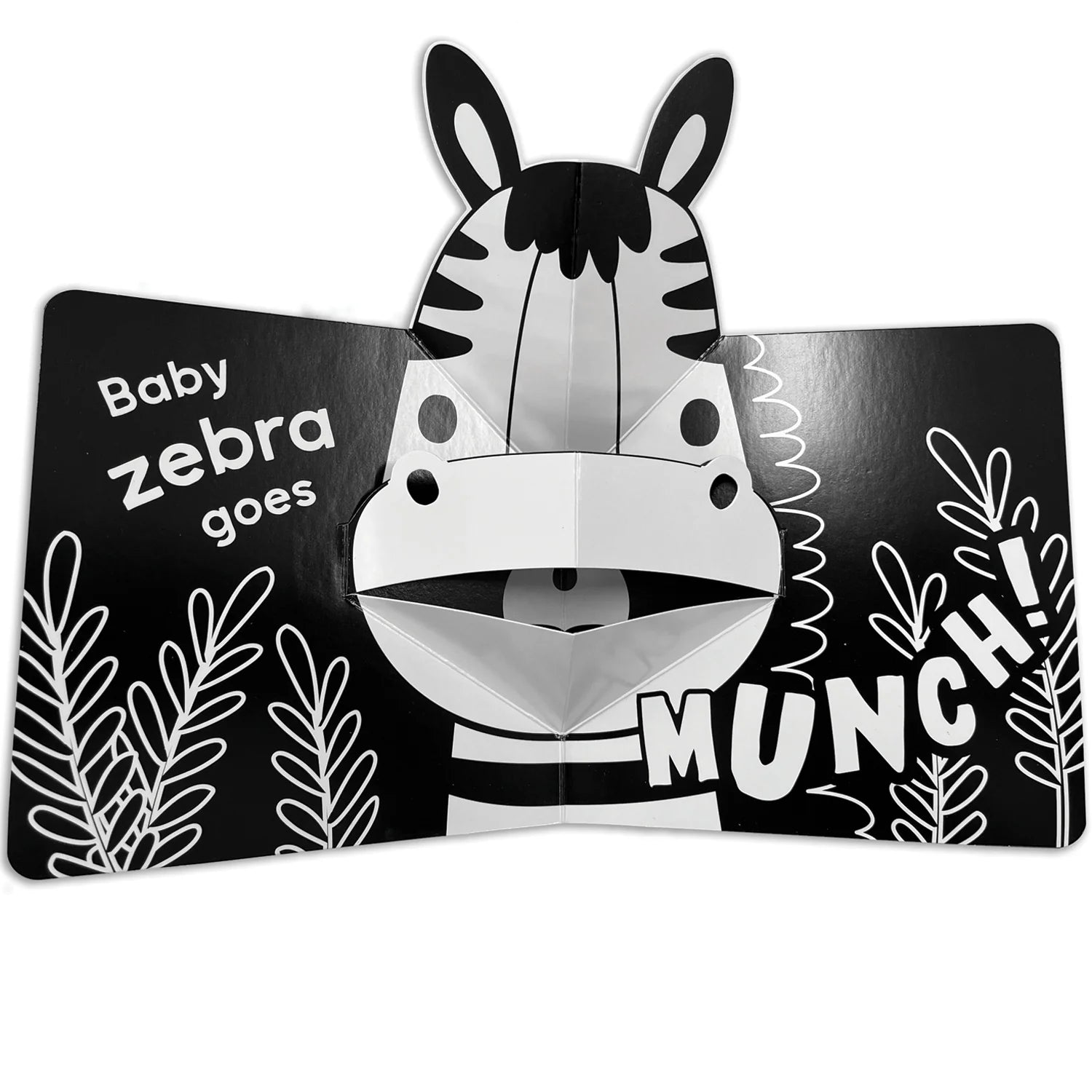 These mini pop-up books pack a big punch with a surprising pop on every spread! Bold black and white illustrations are perfect to babies learning to focus on shapes, and will be entranced by the elements that pop and move each time the page is turned. The simple text and 3D effects of the pops are sure to delight little ones.