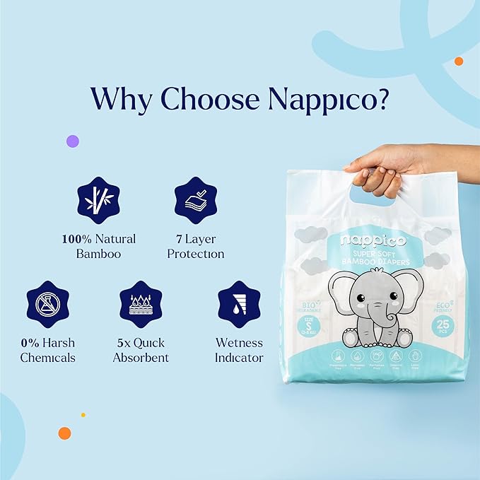 โ ๐ญ๐ฌ๐ฌ% ๐ก๐ฎ๐๐๐ฟ๐ฎ๐น ๐๐ฎ๐บ๐ฏ๐ผ๐ผ ๐๐ถ๐ฎ๐ฝ๐ฒ๐ฟ: Ultra-soft, hypoallergenic, and eco-friendly, Nappico diapers offer superior absorbency, rash-free protection, and a snug fit. Made from certified organic bamboo, our diapers are gentle on sensitive skin and also planet-friendly.