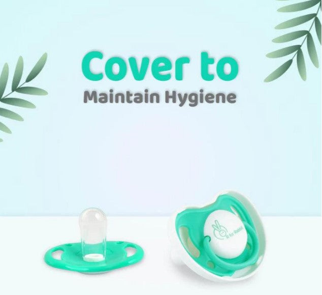 Cover to maintain Hygiene: The pacifier comes with a tight-fitting cover to maintain hygiene of the nipple, making them easy to pop in your bag when you’re ready to go out.
