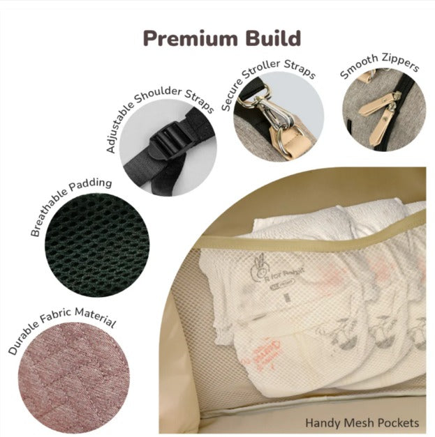 Premium Material: R for Rabbit’s Caramello Truffle Diaper Bag is made up of a high-quality polyester material that makes it durable, easy to clean, lightweight, and also very classy.