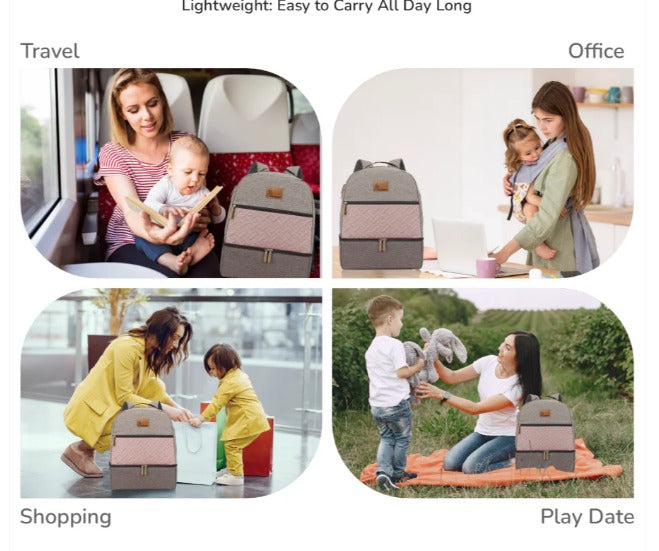 Multipurpose: It can be used both as a baby essentials bag and your personal outdoor errands bag or both, thus encouraging a two-in-one smart investment.