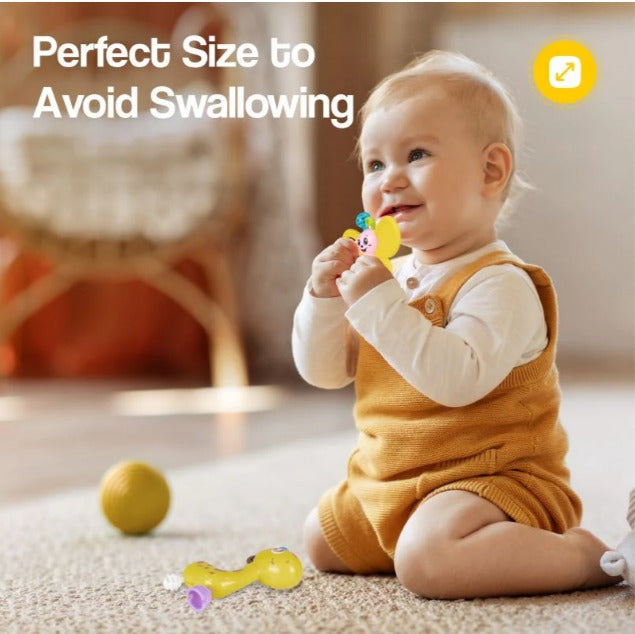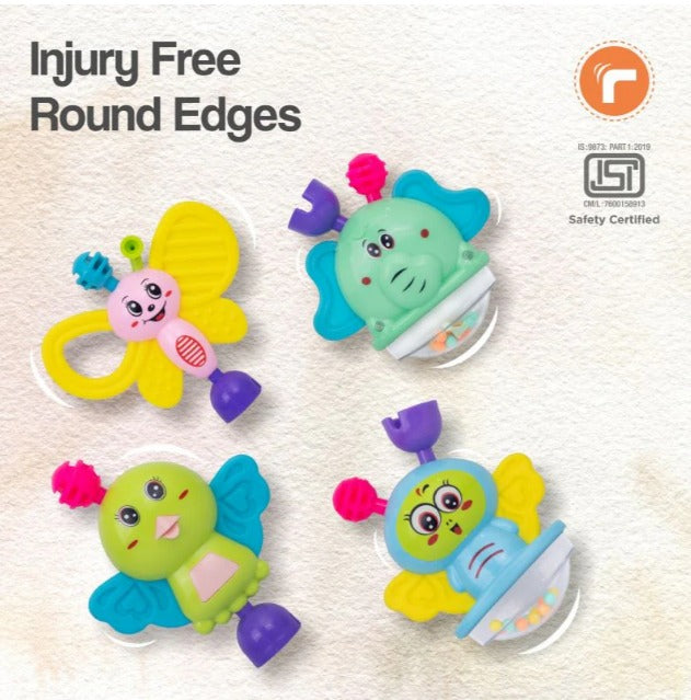 Cute Animals: Adorable cute animals like elephants, giraffe, butterfly, sparrow and bees make this rattle set more engaging for babies.