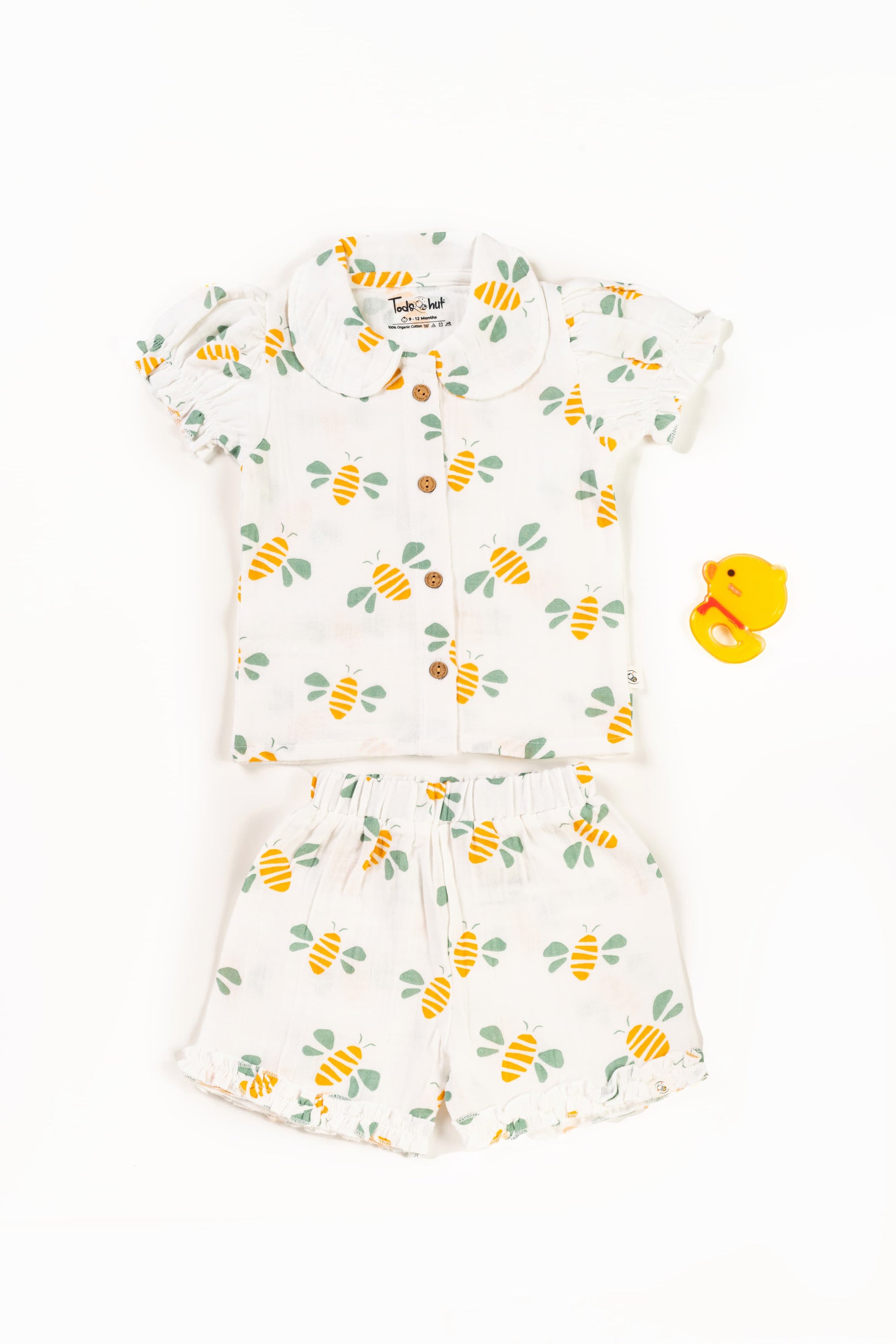 Muslin Peter Pan Collar Half-Sleeve Co-Ords Set Buzzing Bee