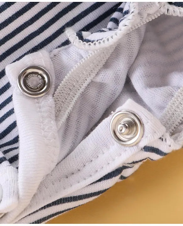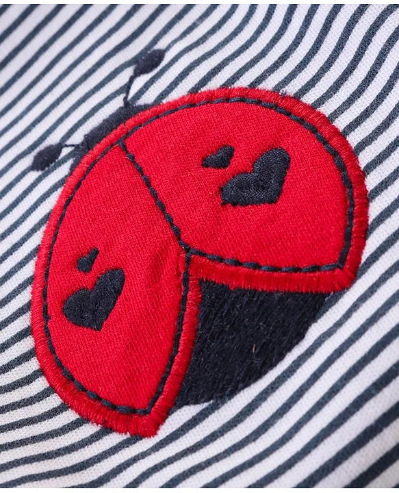 ToffyHouse 100% Cotton Knit Half Sleeves Striped Romper with Lady Bug Embroidery - Navy Blue