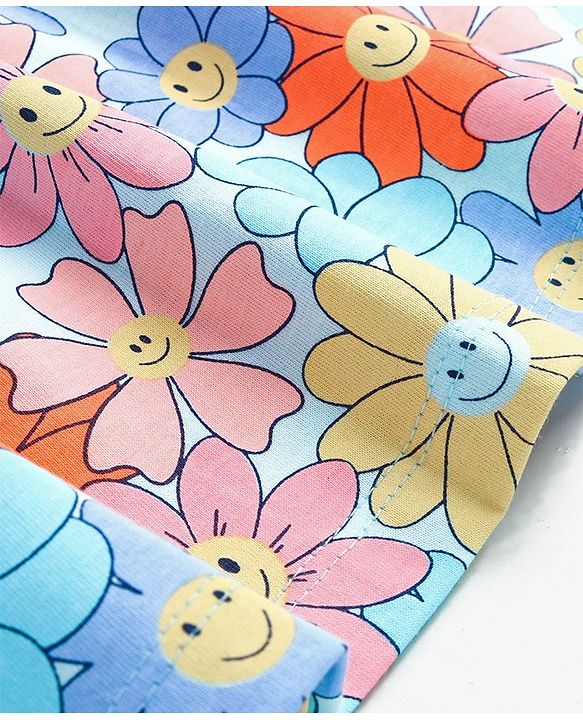 ToffyHouse Cotton Knit Sleeveless Frock with Floral Print - Multicolour