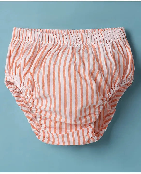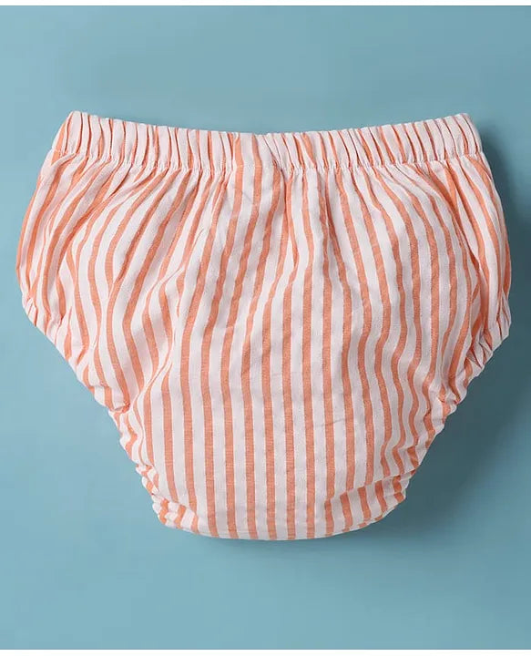 ToffyHouse Cotton Woven Half Cap Sleeves Striped Frock with Bloomer - Orange