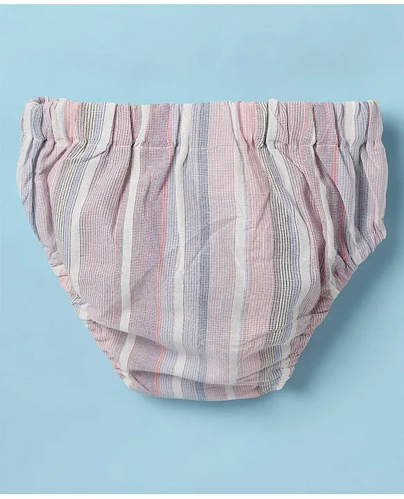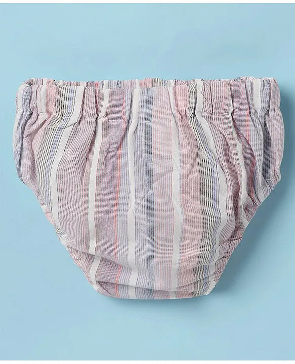 ToffyHouse Cotton Woven Sleeveless Striped Frock with Bloomer & Bow Applique - White