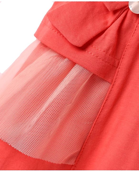 ToffyHouse Half Sleeves Dress With Floral Embroidery & Bow Applique - Coral Pink