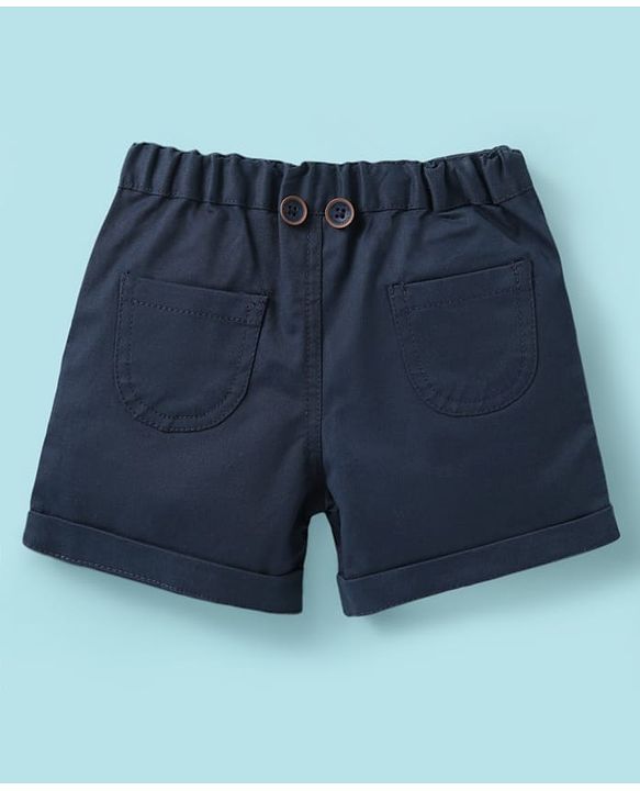 ToffyHouse Half Sleeves Printed Shirt & Shorts With Bow & Suspender - White & Navy Blue