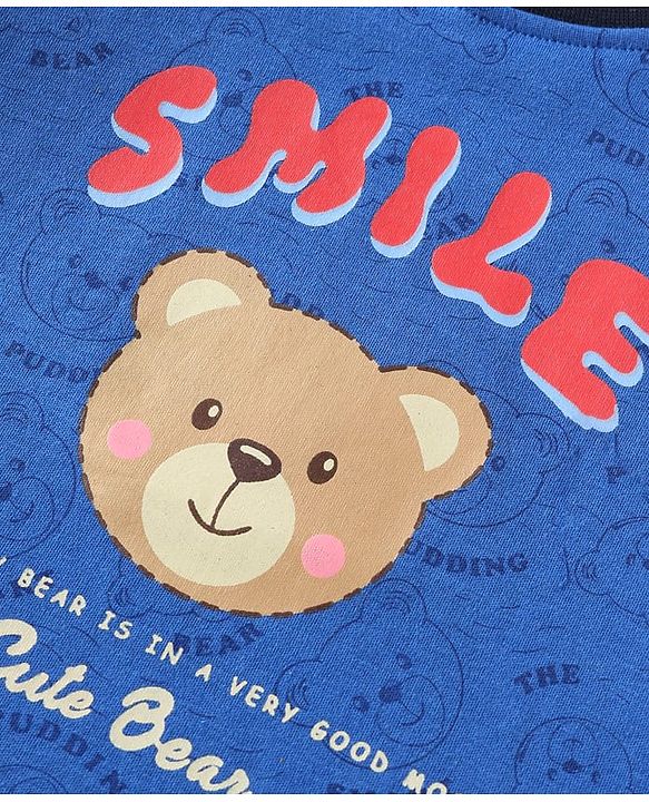 ToffyHouse Half Sleeves T-Shirt and Shorts Set with Bear Print - Royal Blue