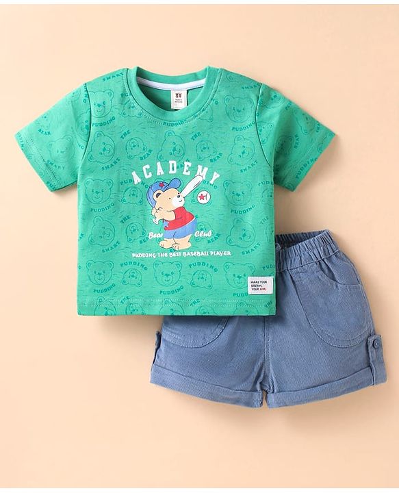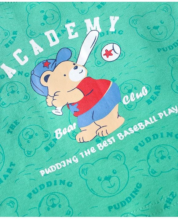 ToffyHouse Half Sleeves T-Shirt & Shorts Set With Teddy Bear Print - Green