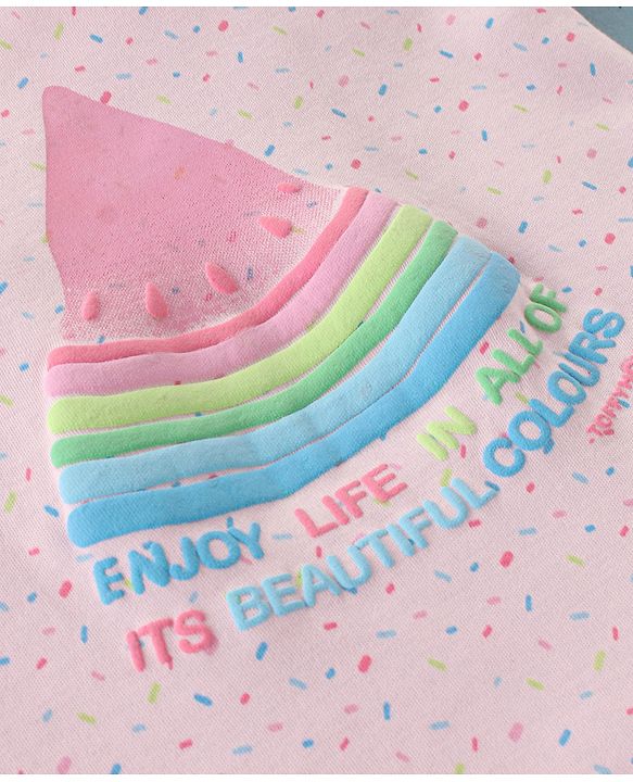 ToffyHouse Half Sleeves Top with Watermelon Print & Layered Skirt Set - Light Pink