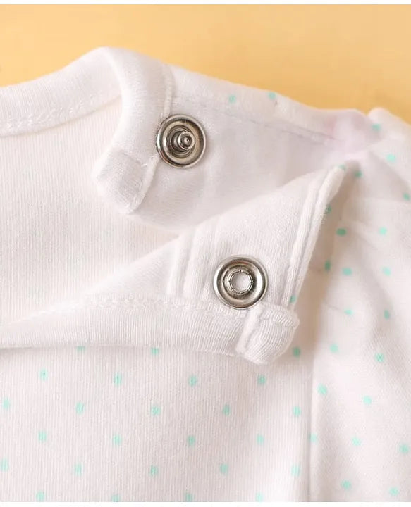 ToffyHouse Interlock Knit Frock & Half Sleeves Inner Tee With Heart Patch & Embroidery - Sea Green & White