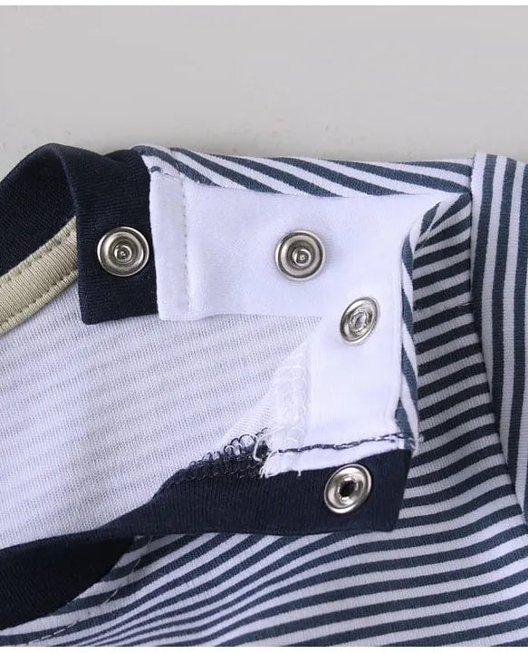 ToffyHouse Knitted Half Sleeves Striped T-Shirt & Shorts Set with Queen's Guard Embroidery - Red & Blue