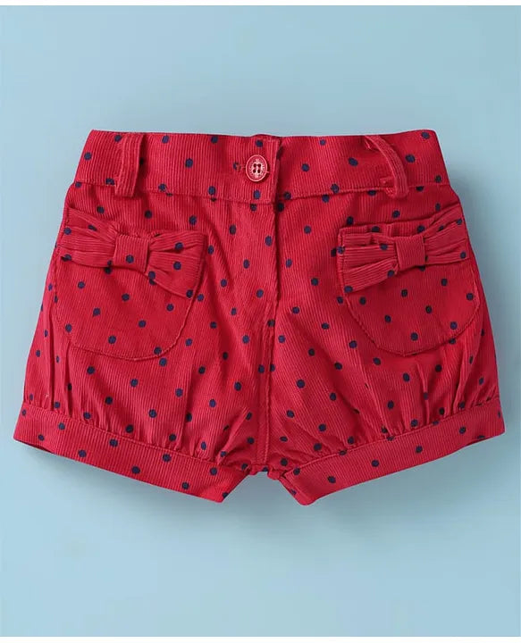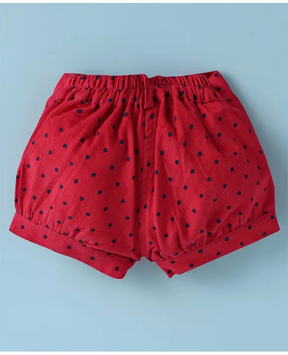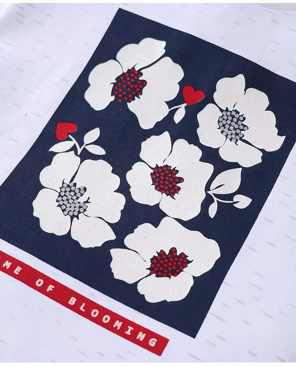 ToffyHouse Knitted Half Sleeves Top & Shorts Set with Floral Print - White & Red