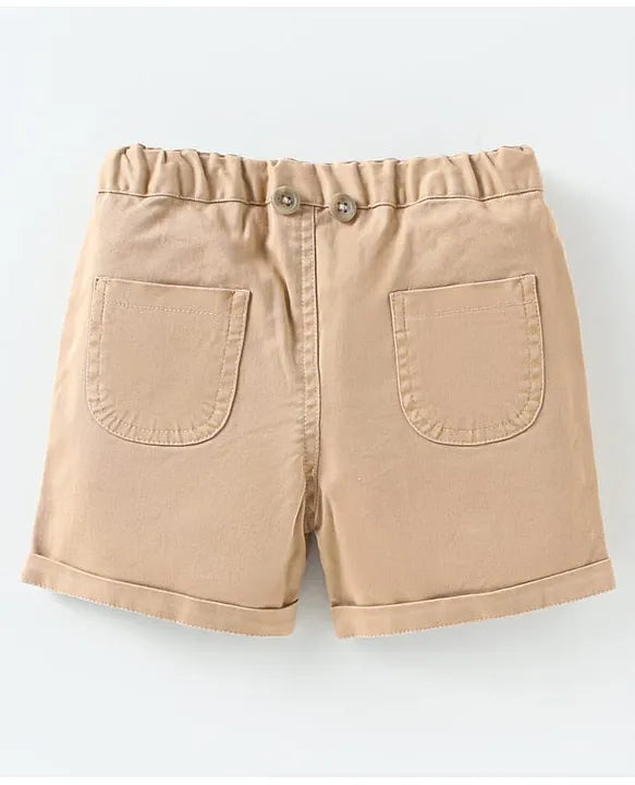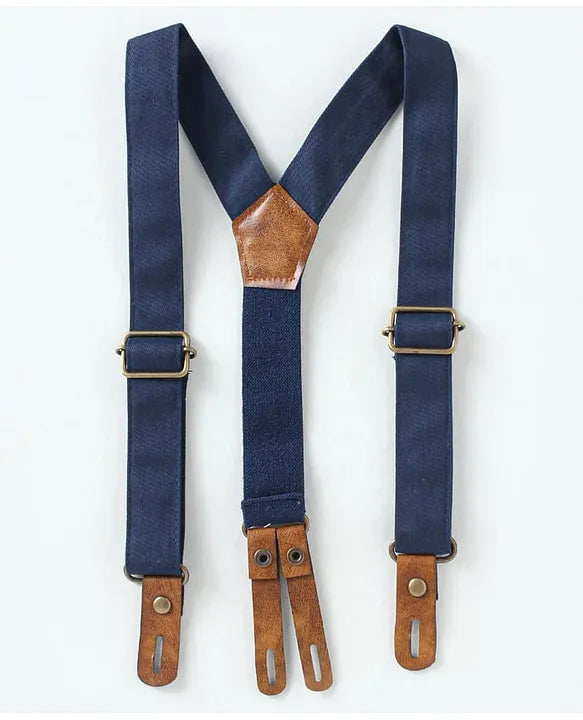 ToffyHouse Poplin Woven Half Sleeves Checks Shirt & Shorts Set with Bow & Suspender - Tan Blue