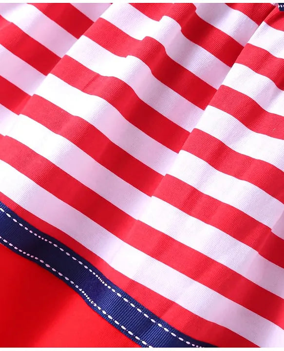 ToffyHouse Single Jersey Knit Sleeveless Peter Pan Collared Frock with Stripes - Red