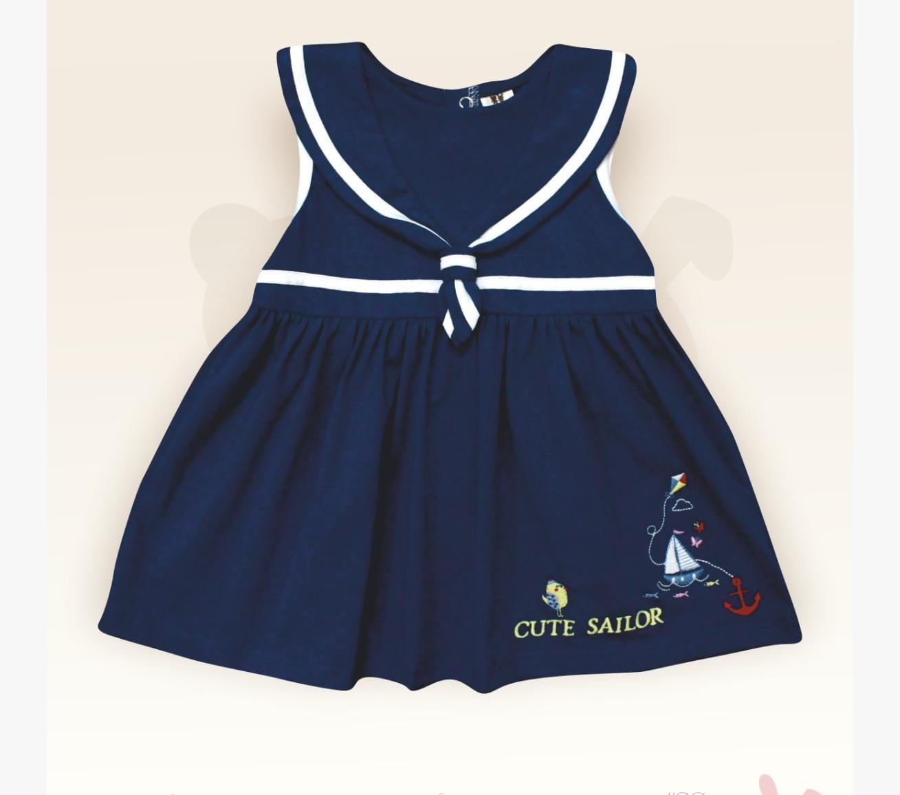 ToffyHouse Sleeveless Sailor Neck Frock With Boat Embroidery - Blue