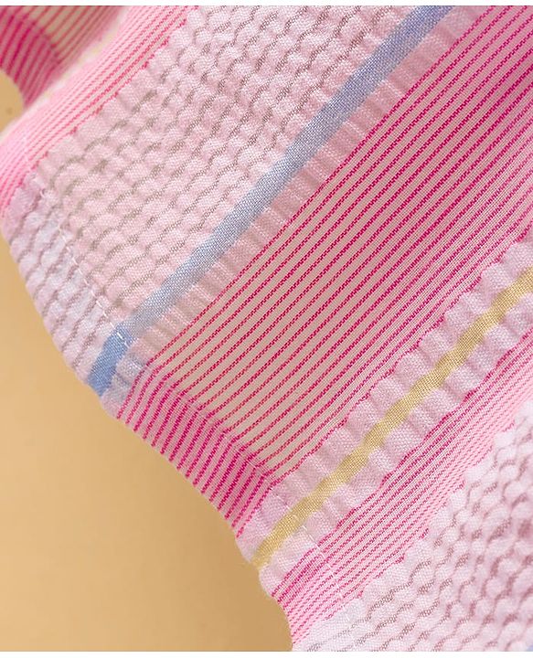 ToffyHouse Sleeveless Striped Frock with Bow Applique - Pink
