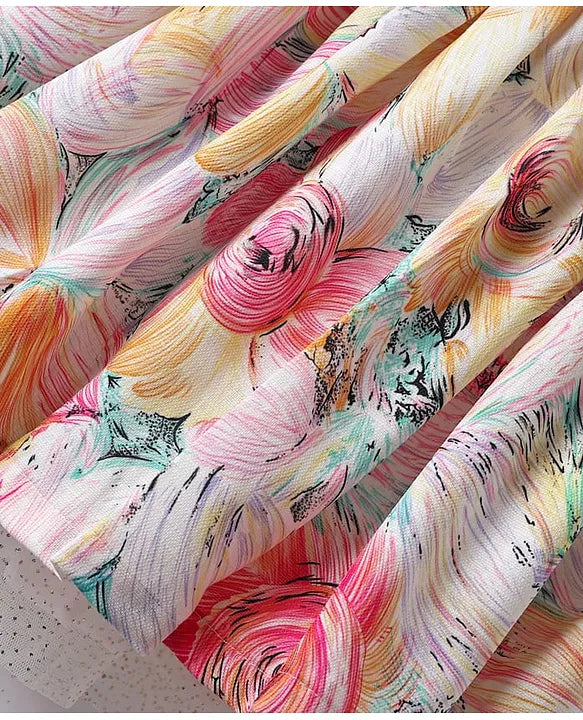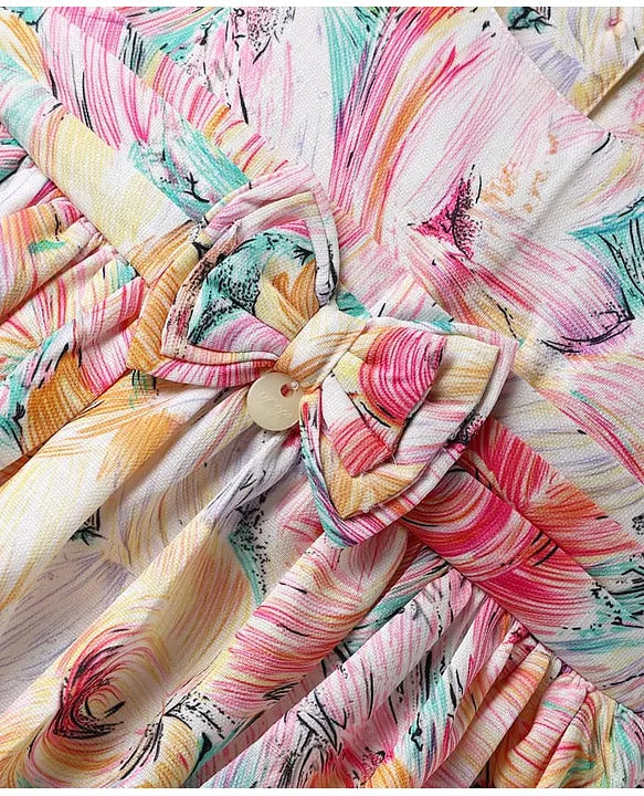 ToffyHouse Woven Half Sleeves Frock With Floral Print & Bow Applique - Multicolour
